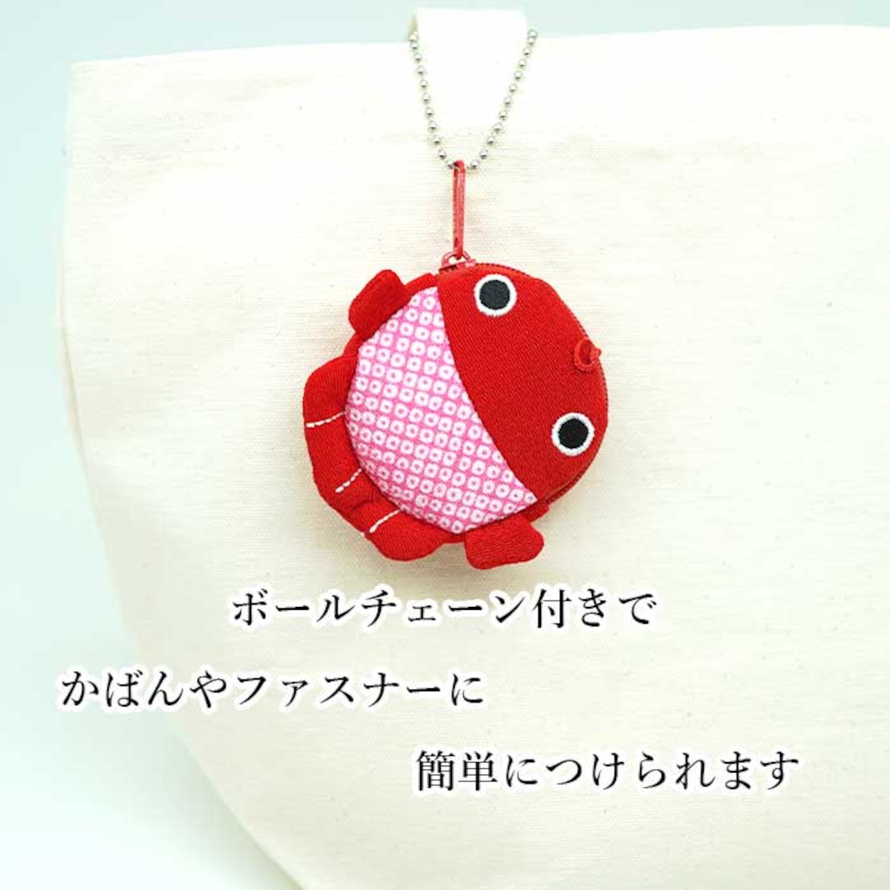 商品名金魚シリーズ 金魚のコインケース2商品についてまるで水の中を泳いでいるかのような、愛らしい金魚のコインケースです。ちりめん素材のやさしい風合いと、鮮やかな色合いが目を引くデザイン。小銭はもちろん、アクセサリーやお守りなど小さな宝物を入れても◎。手のひらサイズでバッグの中でもかさばらず、取り出すたびにほっこり気分。お祭り気分をそっと持ち歩けるような、遊び心あふれる和小物です。ご自身用にはもちろん、ちょっとした贈り物や海外の方への和風ギフトにもぴったりです。■サイズ縦:6cm横幅:6cmマチ:1.5cm■素材レーヨンちりめん綿(裏地)スチール(ボールチェーン)ご注意※商品によって柄の出方や表情等が異なる場合がございます。※レーヨンちりめんは濡れると縮みます。水気にご注意ください。※小さなパーツを誤ってお子様が飲み込まないようにご注意ください。※お客様のモニター環境によっては実物と異なって見える場合もございます。キーワードコインケース 金魚 かわいい [金魚シリーズ 金魚のコインケース2] 金魚 夏 小銭入れ 縮緬 マチ付き 可愛い プレゼント